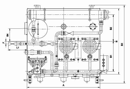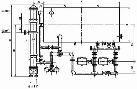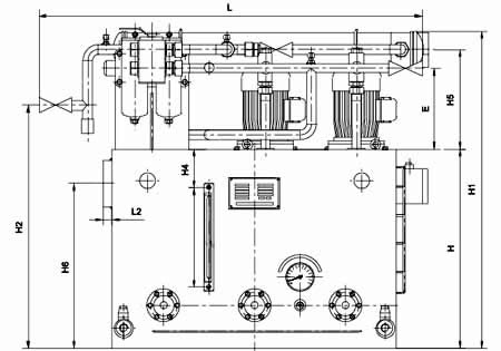 ≥250L/min稀油站,采用蒸汽加熱油箱中的潤(rùn)滑油,儀表盤(pán)尚多一檢測(cè)冷卻器進(jìn)出水管壓差的儀表,其主要部件均另外裝于基礎(chǔ)上;而≤125L/min稀油站的全部部件都裝在油箱上,為整體式結(jié)構(gòu)。