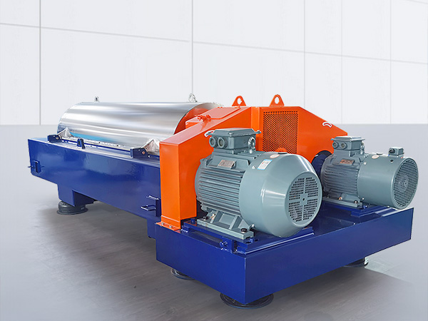 其工作原理是:懸浮液經(jīng)進料管、螺旋出料口進入轉鼓。在高速旋轉產(chǎn)生的離心力作用下,比重較大的固相顆粒沉積在轉鼓內壁上,與轉鼓作相對運動的螺旋葉片不斷地將沉積在轉鼓內壁上的固相顆粒刮下并推出排渣口,分離后的液相經(jīng)大端蓋液相溢流口通道排出;油相經(jīng)大端蓋油相溢流口通道排出。